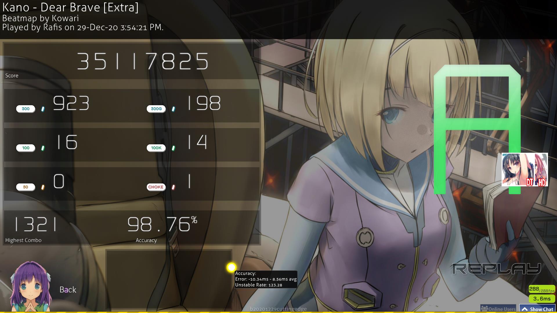 - Rafis | Kano - Dear Brave [Extra] +HD,DT (98.76%) (Kowari | 8.30★) 1m 1321/1349x #3 | 742pp | 82.18 cv. UR